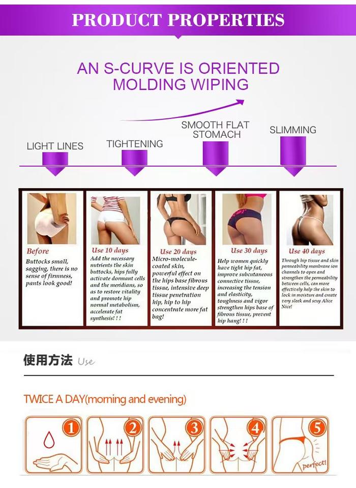 Extrait d'herbes sauvages naturelles, huile essentielle liquide, emballée sous vide pour l'agrandissement et le lifting des hanches