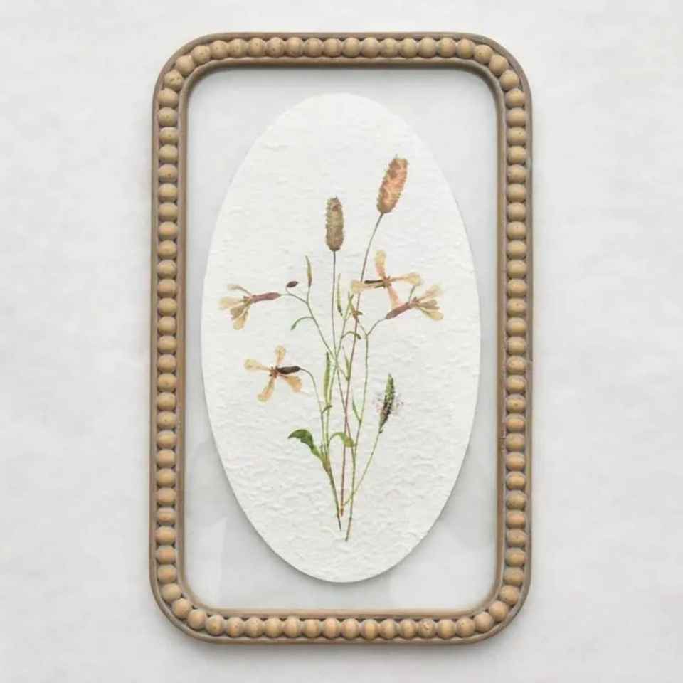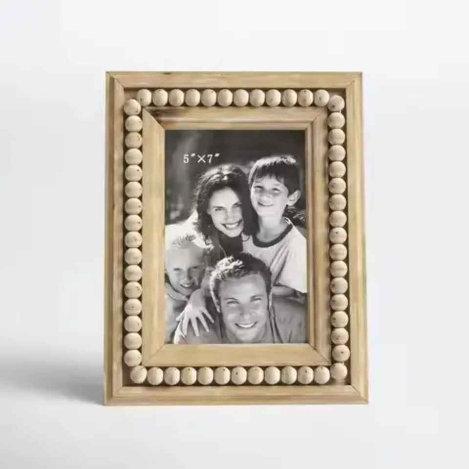 Natural Wood Beaded Picture Frame Rectangular Floating Glass Art Frame Boho Farmhouse Wall Hanging Pressed Flower Display Case