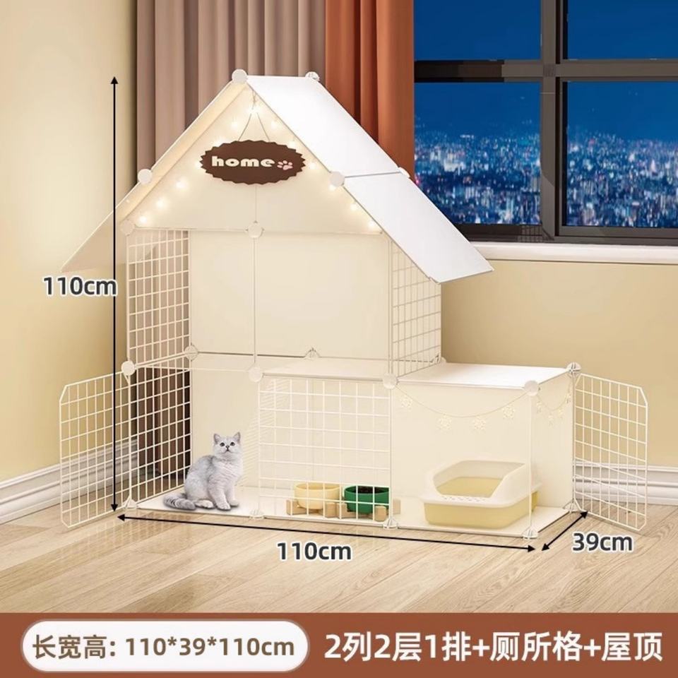 Cage pour chat en bois naturel, assemblage libre, cage en maille de fer, maison pour animaux de compagnie, chenil pour chien, cage en acier Oxford, villa jaune pour chat pour la maison