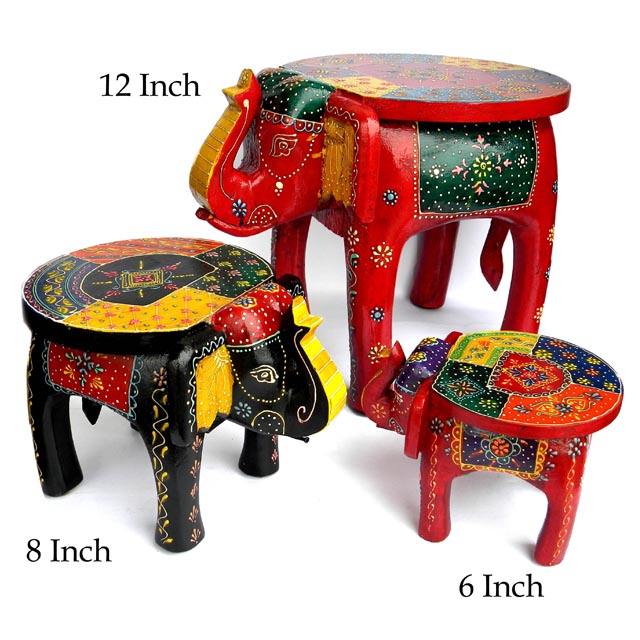 Tabouret indien en bois naturel de couleur bois pour le salon, décoratif
