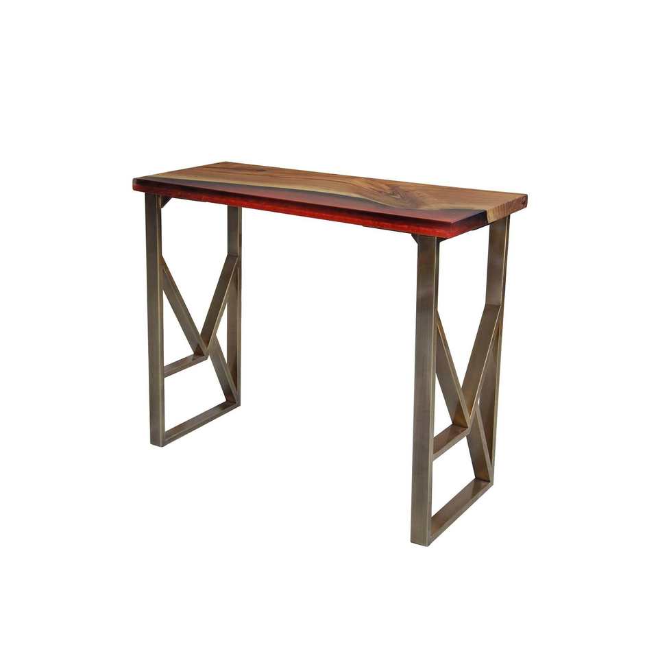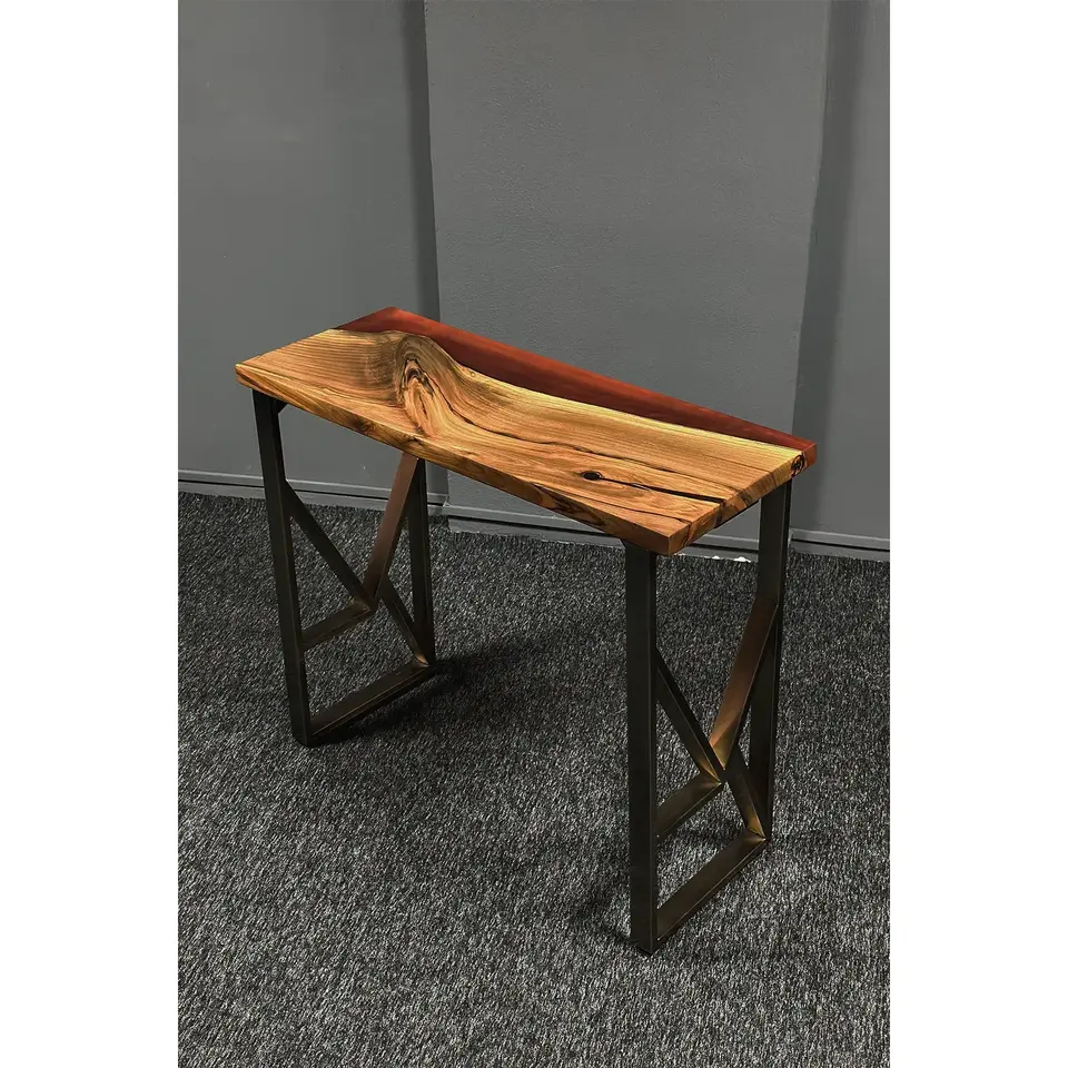 Console en Époxy avec Pieds en Métal Console en Bois Naturel Décorative