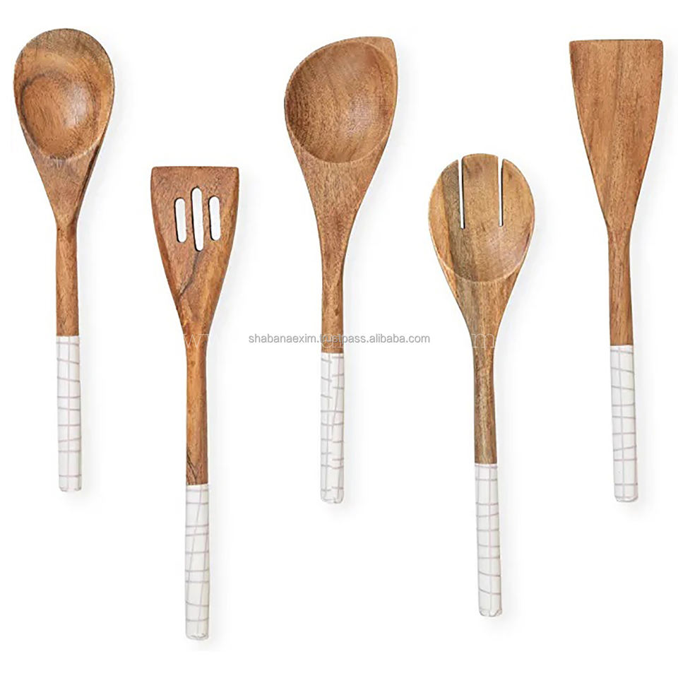 Ustensiles de cuisine en bois naturel Cuillères de cuisson Ustensiles en bois Spatule Réutilisable Fait à la main Ensemble de couverts en bois naturel