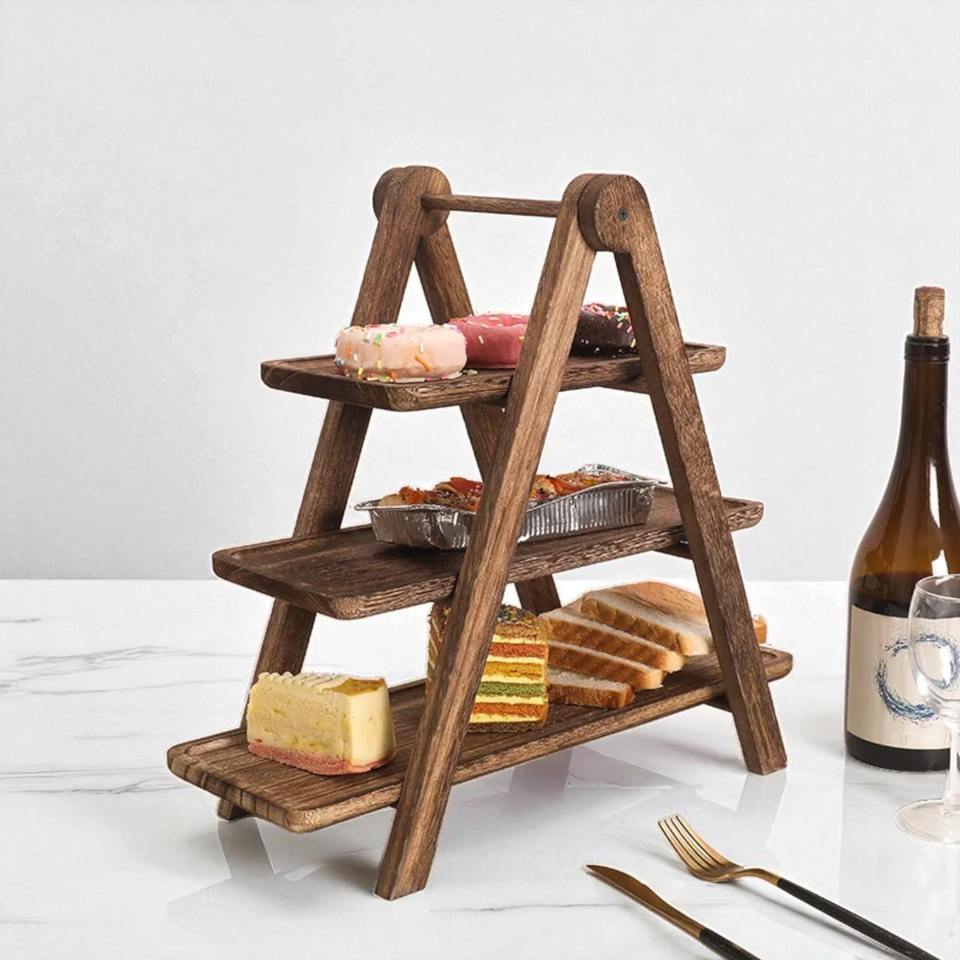 Support à gâteau à plusieurs niveaux en bois naturel, adapté à une utilisation en cuisine, à la décoration de table à manger, au style d'événement, au service de buffet et à l'exposition
