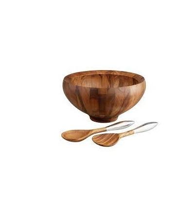 Ensemble de saladier en bois naturel, logo personnalisé, cuillère à salade en bois, fourchette, ensemble de bols en coquille de manga pour produit fait à la main
