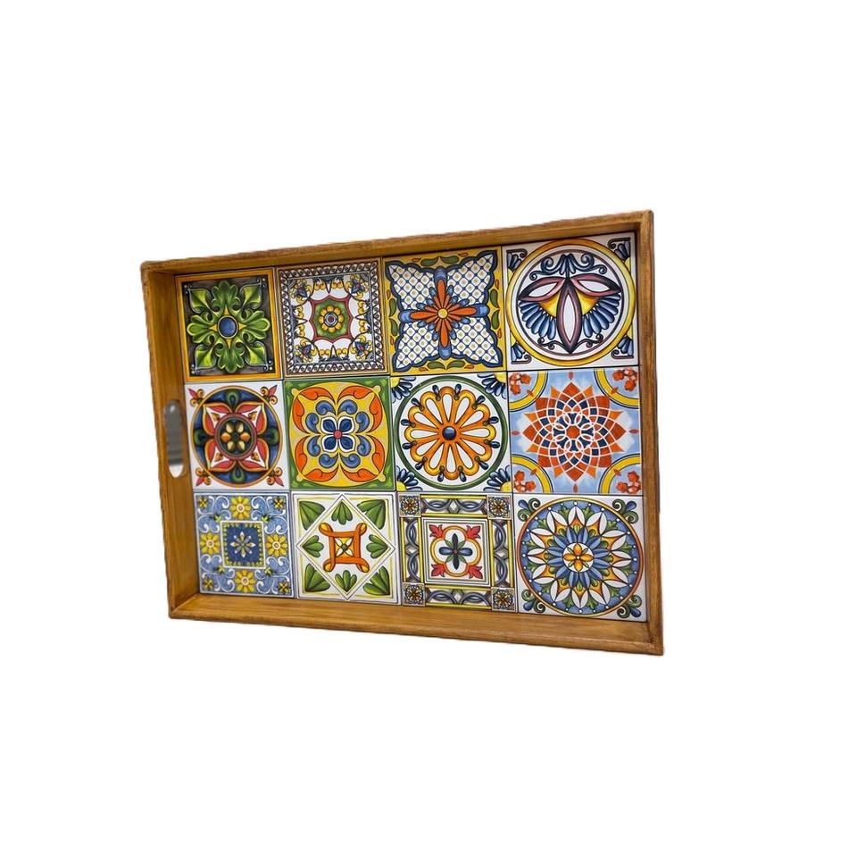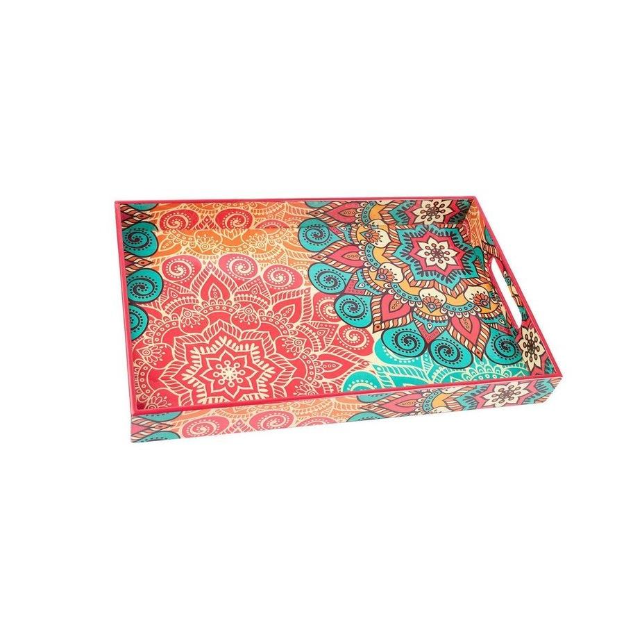 Plateau en bois naturel avec design abstrait imprimé Plateau en bois imprimé de style vintage pour la salle à manger