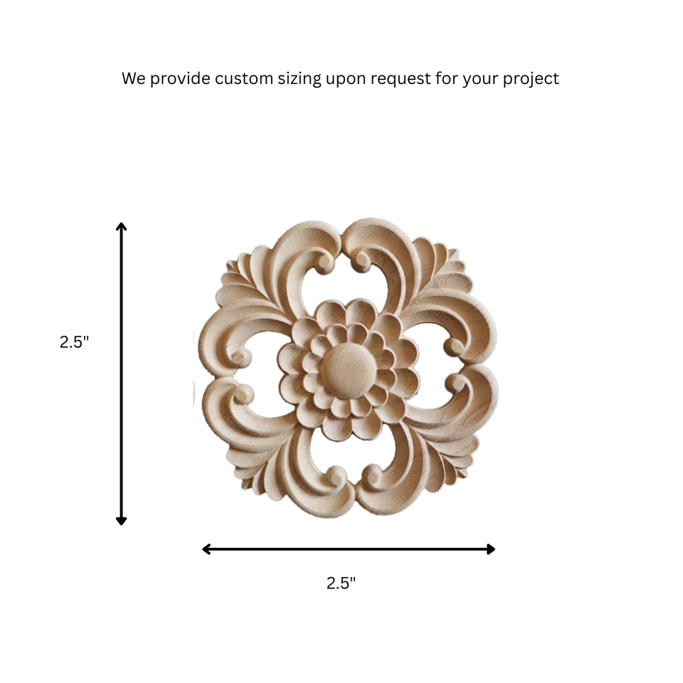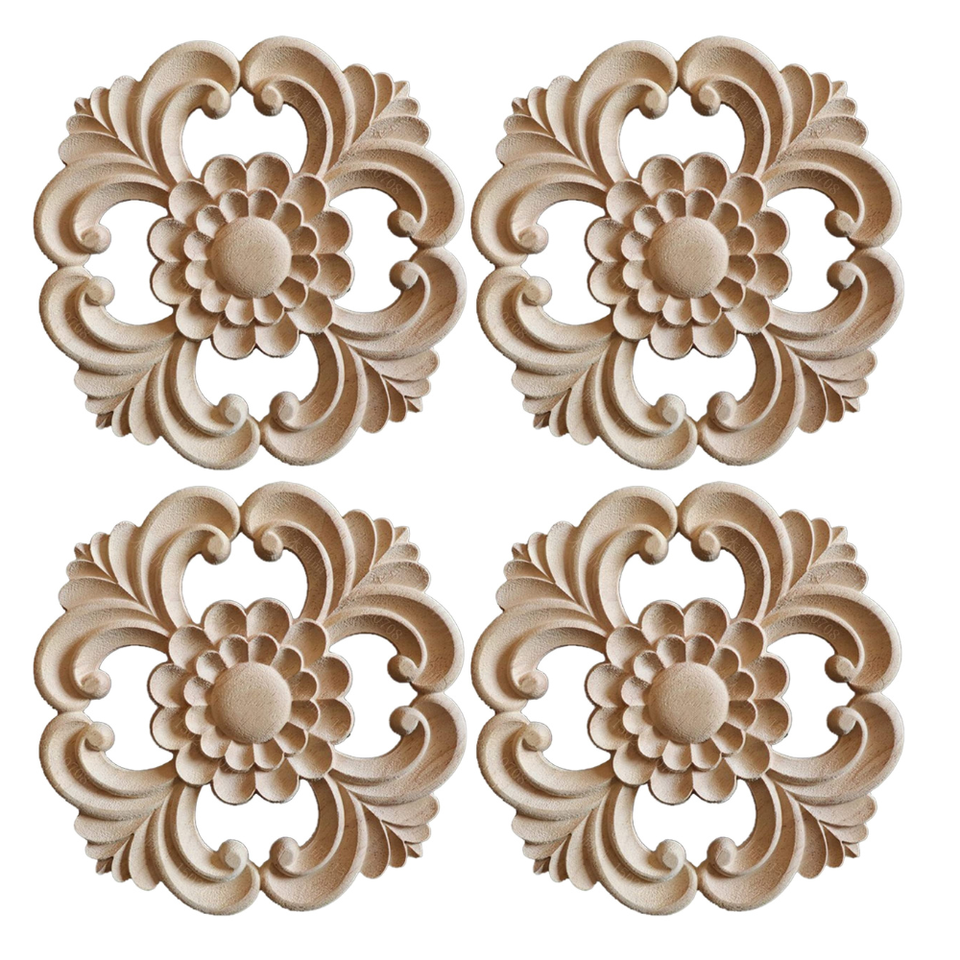 Natural Wooden Carving Applique Solid Wood Onlay Vintage Wooden Ornament Furniture Door Wall Decoration Home Interior Onlay