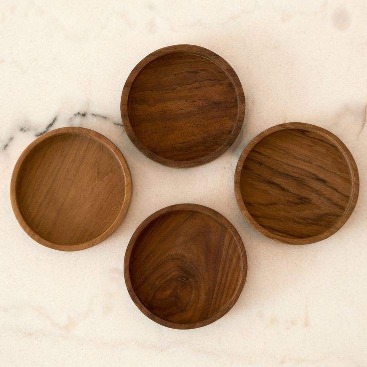 Ensemble de sous-verres en bois naturel protégeant les tables basses, les tables d'appoint et les surfaces de salle à manger des taches, de la chaleur et de l'humidité