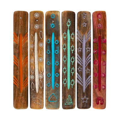 Natural Wooden Incense Stick Holder with Carved Ash Catcher Color Painted Incense Burner Therapeutic Home Decoration for Spring