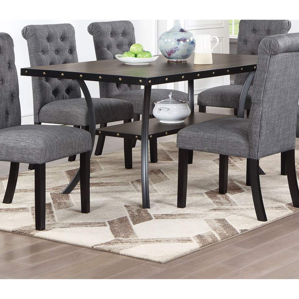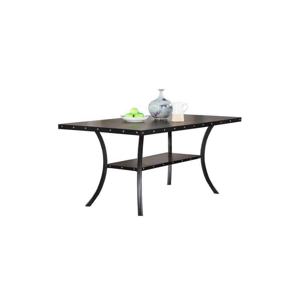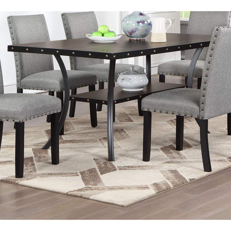 Table à manger rectangulaire en bois naturel, 1 pièce, mobilier pour salle à manger avec clous décoratifs et étagère de rangement