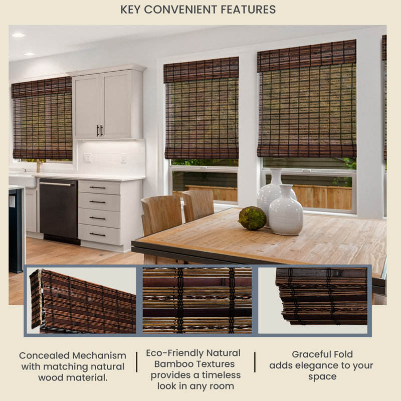Auvents romains en bambou sans fil filtrant la lumière tissée naturelle pour le traitement des fenêtres
