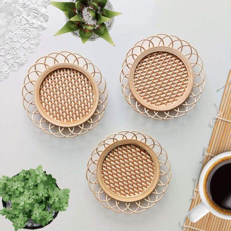 Sous-verres en rotin naturel tressé ajouré, motif dentelle, faits à la main, en jonc de mer durable, résistants à la chaleur, style rustique campagnard pour table
