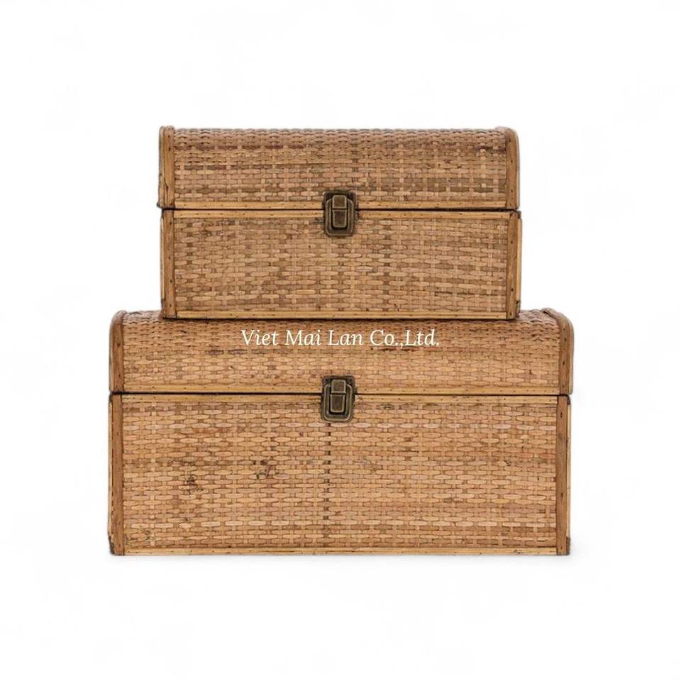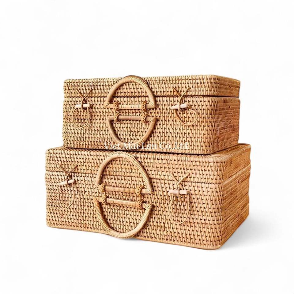 Boîte de rangement multifonctionnelle en rotin tissé naturel, style bohème, fabriquée à la main au Vietnam pour l'organisation de la maison, design éco-responsable