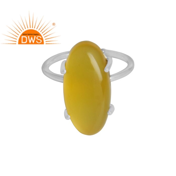 Bague en argent Sterling simple, bijou à la calcédoine jaune, vente en gros, styliste