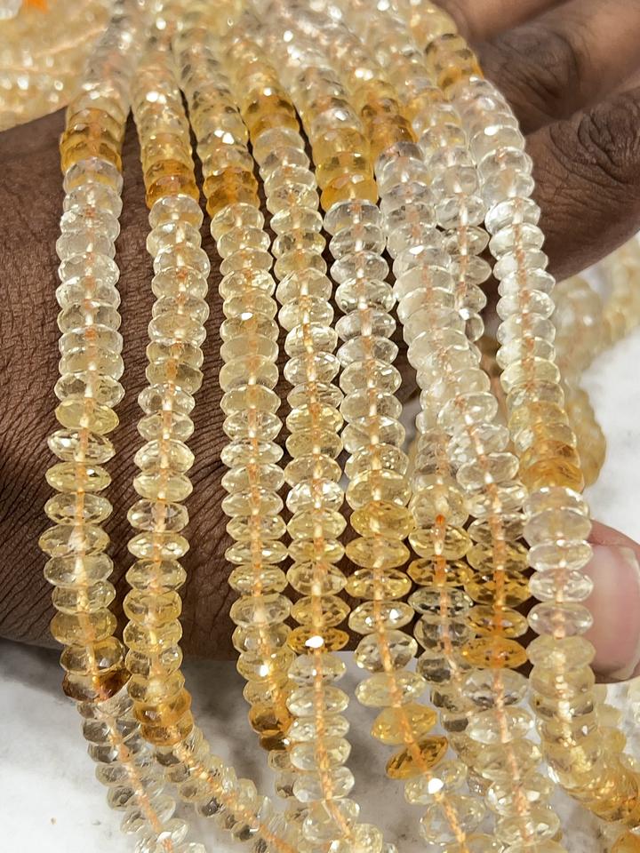 Perles rondes en quartz citrine jaune naturel coupe allemande forme de disque à facettes 7-8mm taille brins perles de pierre