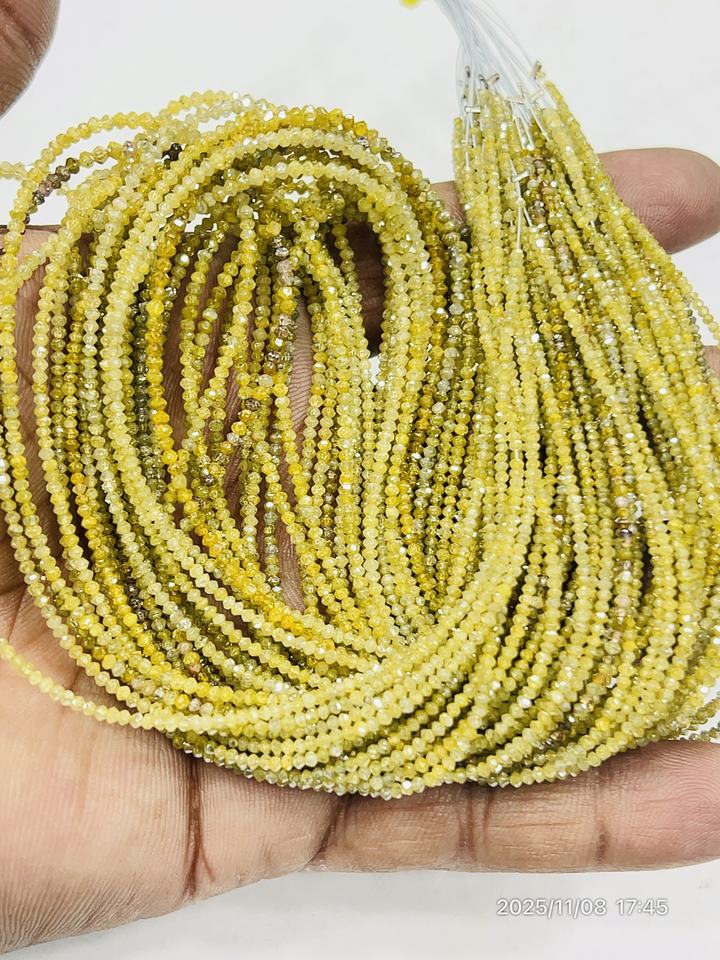 Perles rondes à facettes en diamant jaune naturel brin 15 pouces 2-3mm véritables perles de diamant en vrac pour la fabrication de bijoux fins