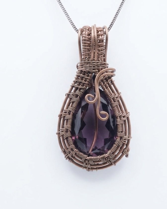 Collier en fil de cuivre entouré de zircon naturel | Pendentif en pierre précieuse zircon faite à la main