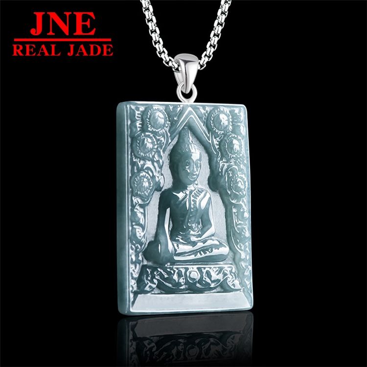 Pendentifs en jade naturel de type A, bleu eau riche, marque King Somdej, statue de Bouddha d'Asie du Sud-Est, Thaïlande, pour hommes et femmes