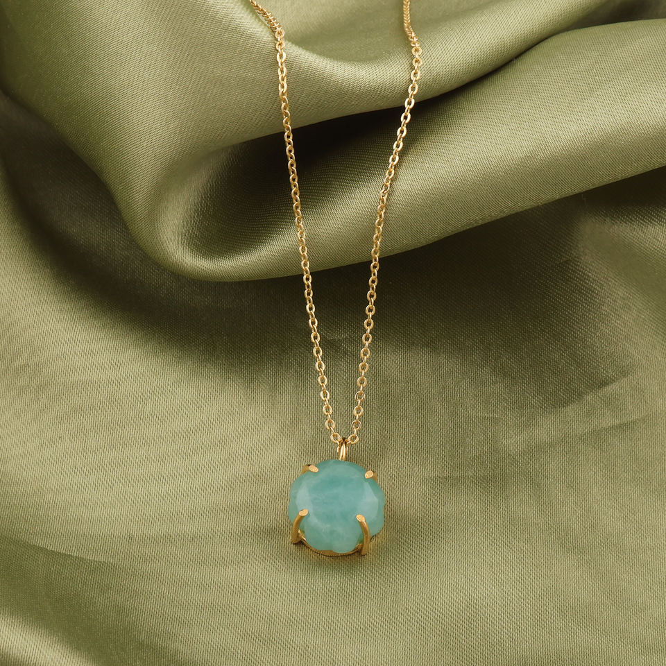 Collier pendentif en amazonite naturelle serti à griffes en forme de trèfle, plaqué or 18 carats, texture collet, bijoux minimalistes, collier de tous les jours