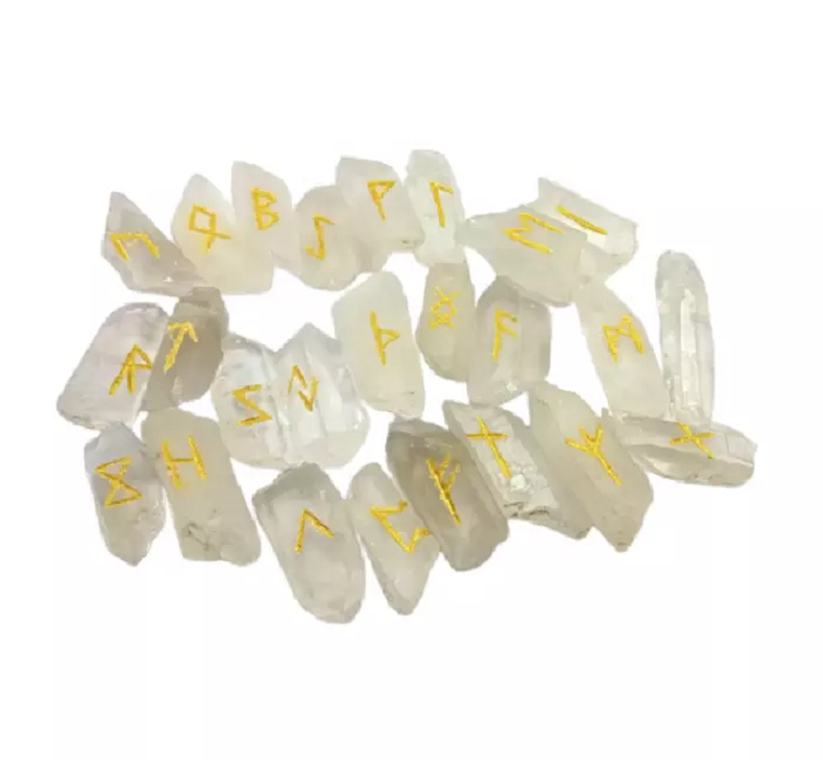 Ensemble de runes en cristal clair naturel pierre d'énergie Wicca naturelle pour la divination et l'intuition méditation Reiki en protection viking