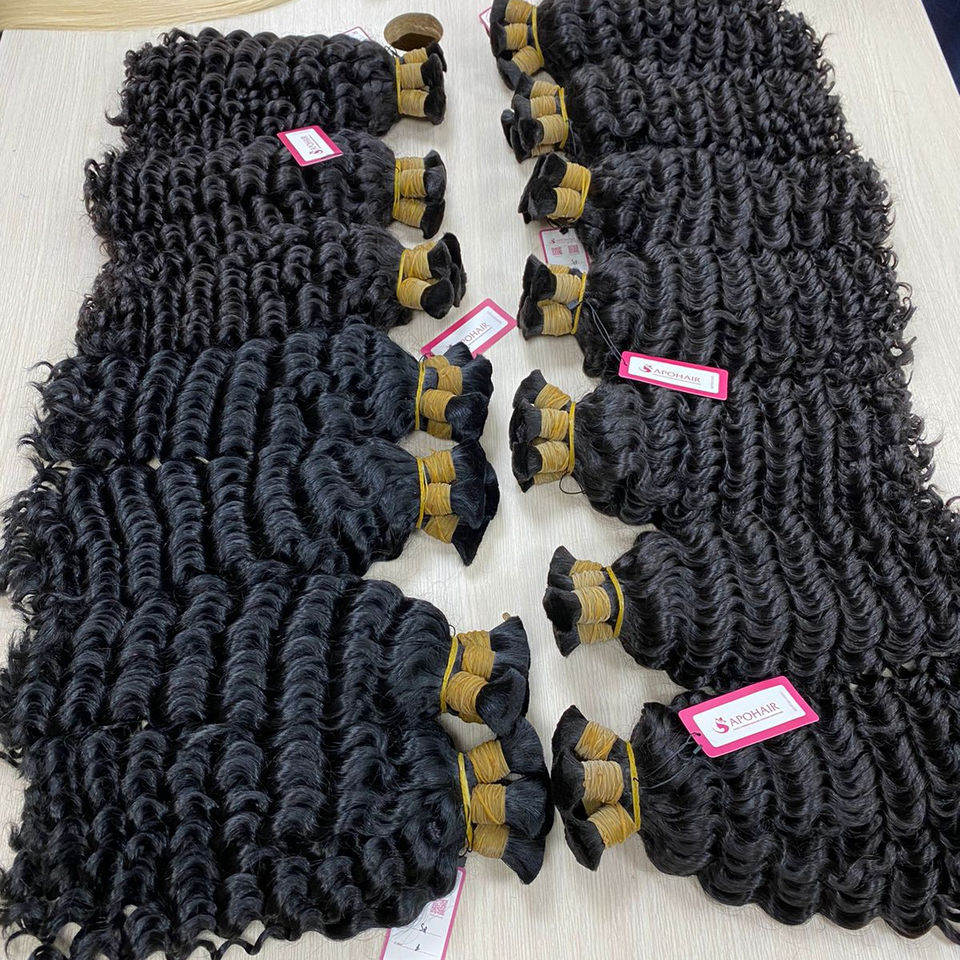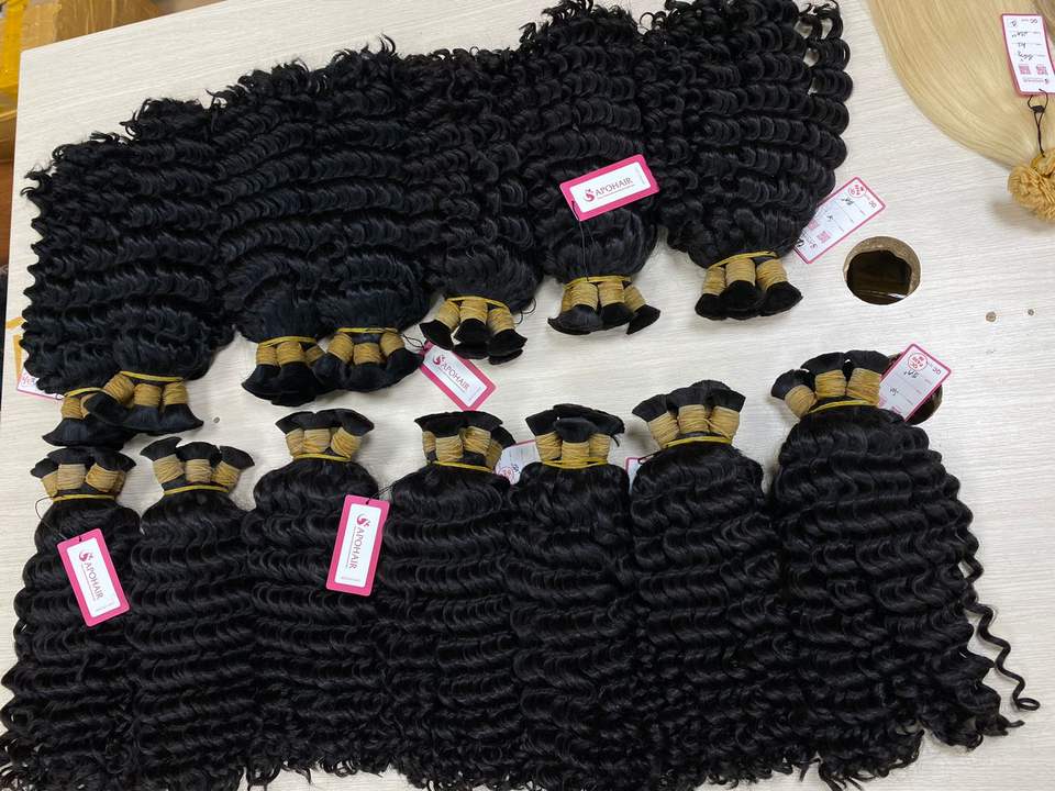 100% Virgin Brazilian Remy Hair Bulk Extension Natural Color Deep Waves-No Tangles No Shedding