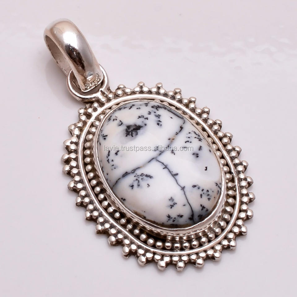 Bijoux fins en argent sterling 925 faits à la main Collection de charme du fabricant Boucles d'oreilles en pierres précieuses opale dendrite naturelle Pendentifs