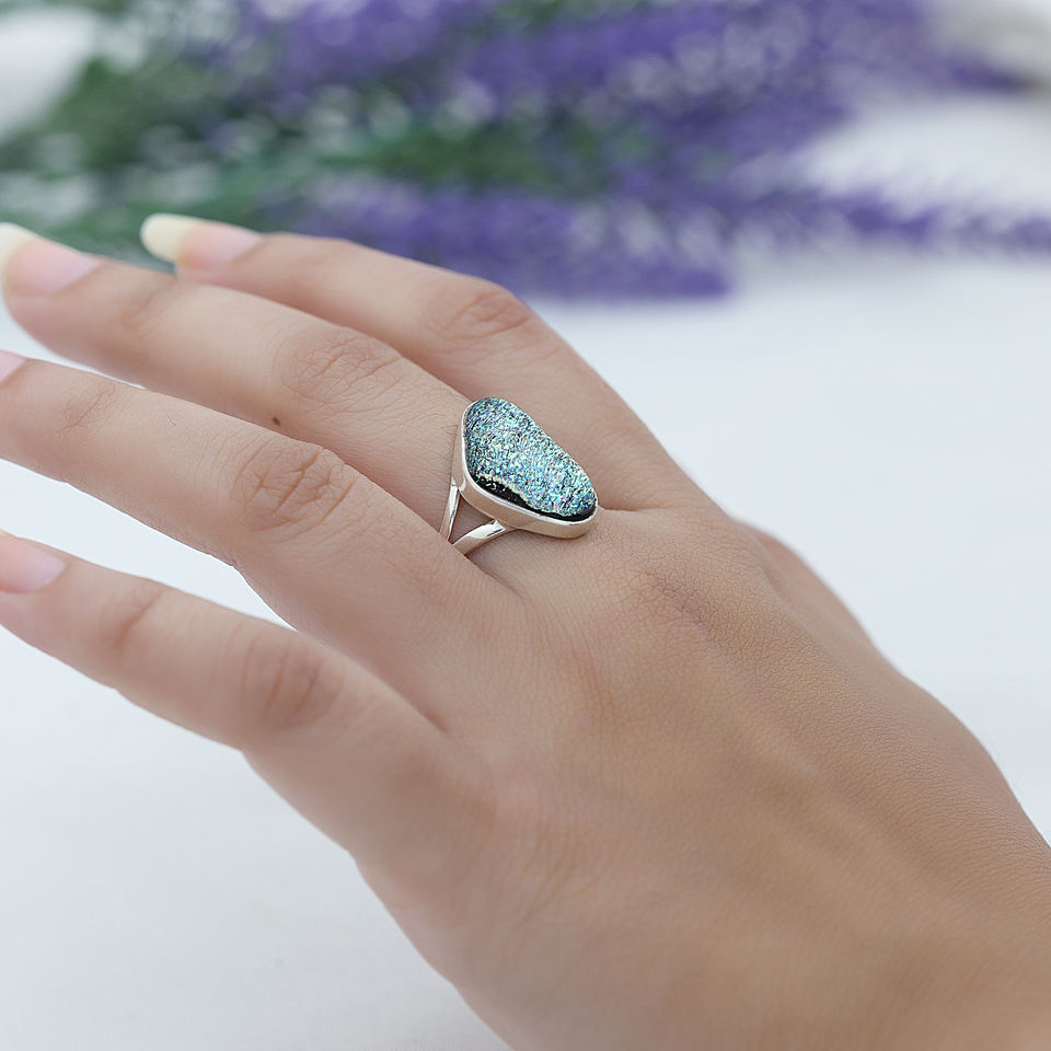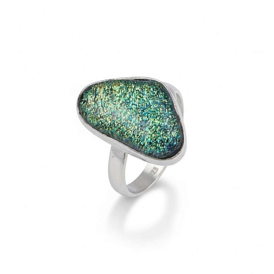 Bagues en verre dichroïque naturel avec motif de cœur en argent sterling 925 bagues de joaillerie fine unies grossiste de bijoux