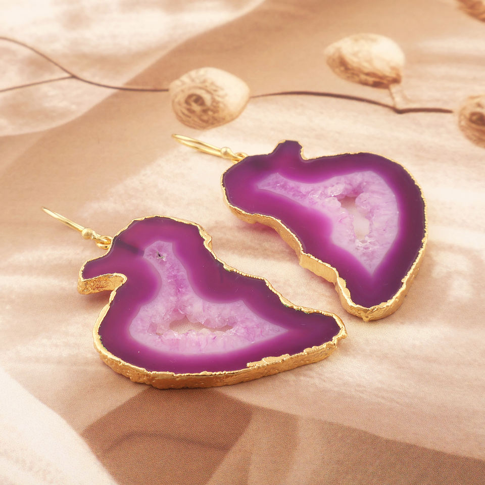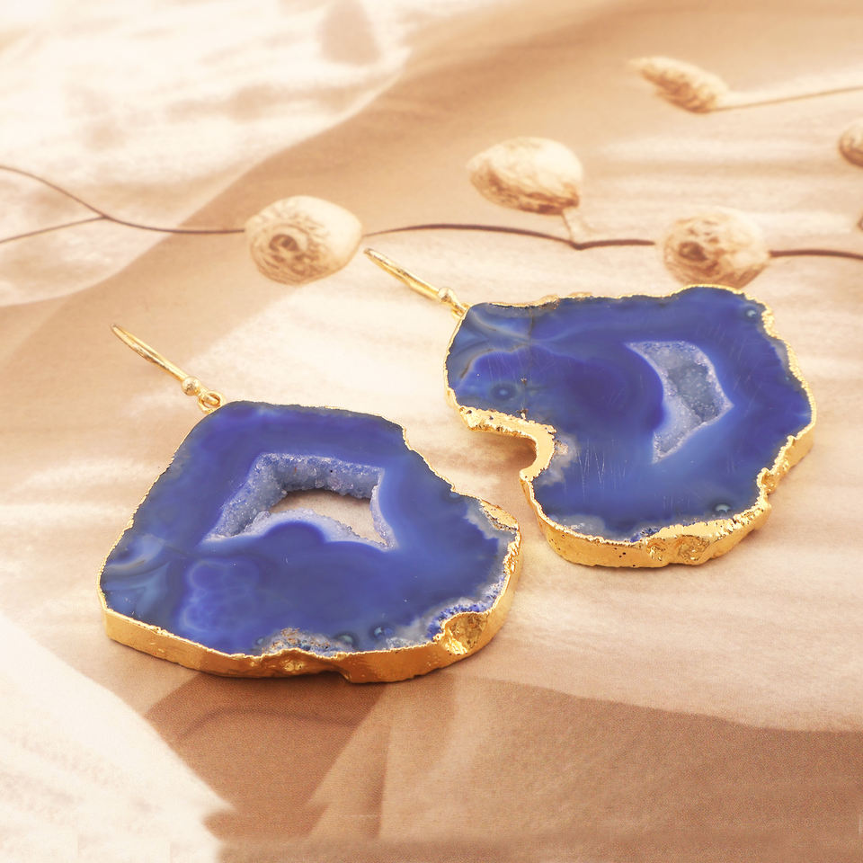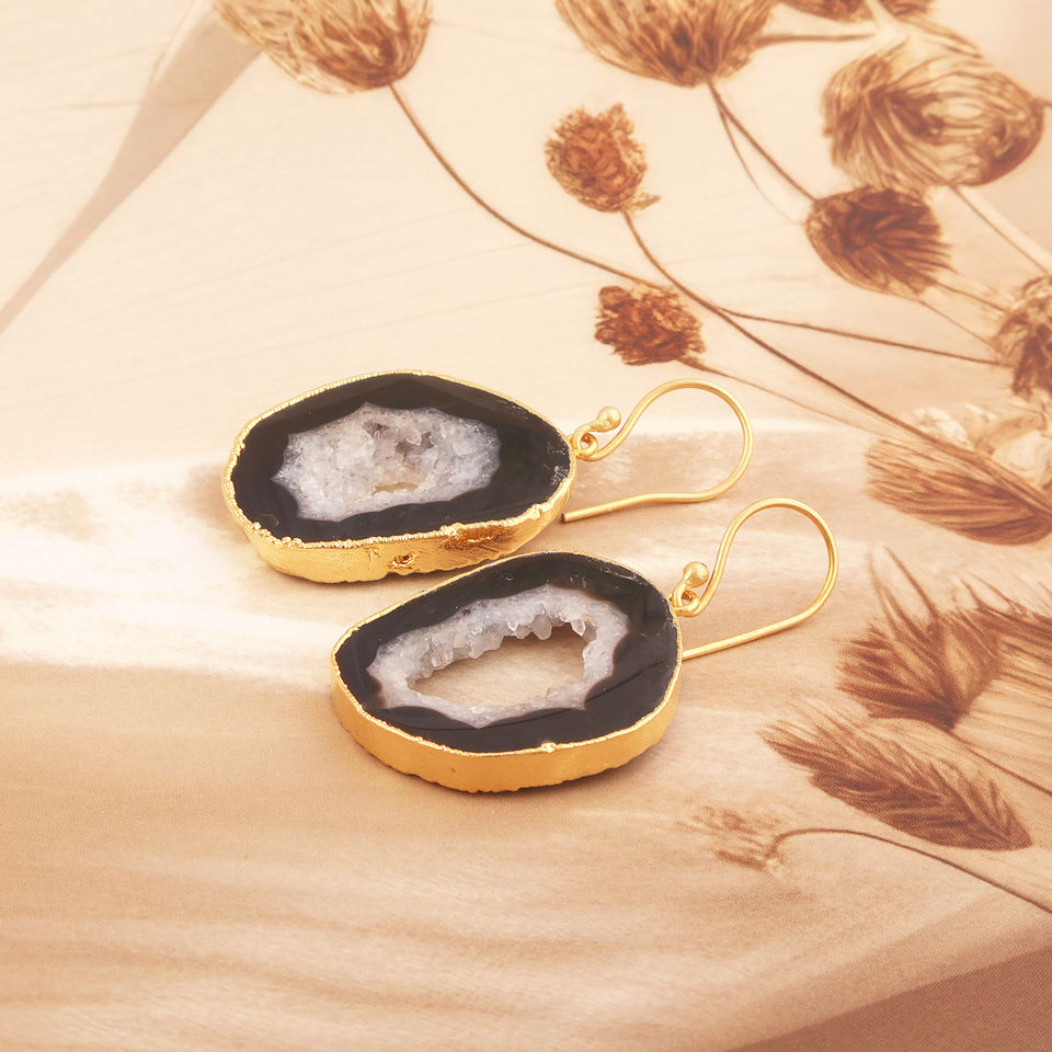 Vente en gros d'agate géode authentique tranche de druzy crochet boucle d'oreille or galvanoplastie tranchant fait main suspendu cadeau pour elle
