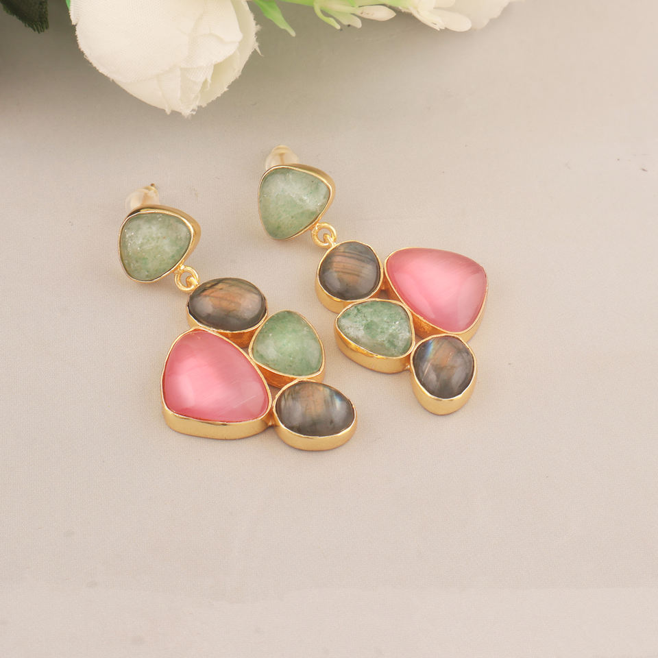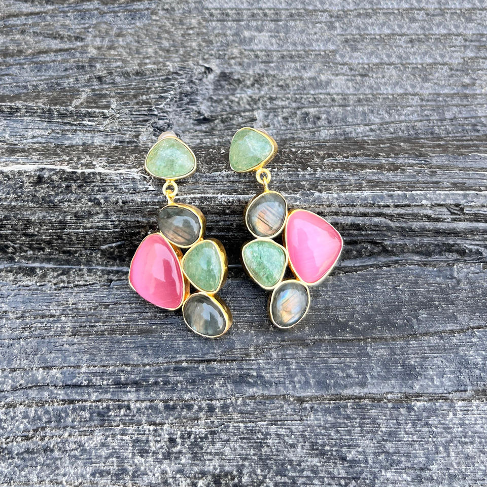 Labradorite, Strawberry Quartz & Pink Cats EyeMain Stone