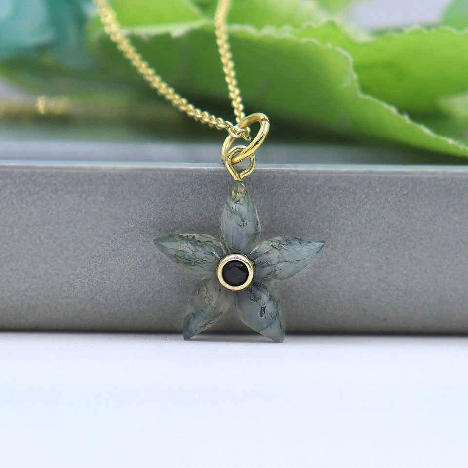 Stone Name:Moss Agate, Black CZ, White CZ