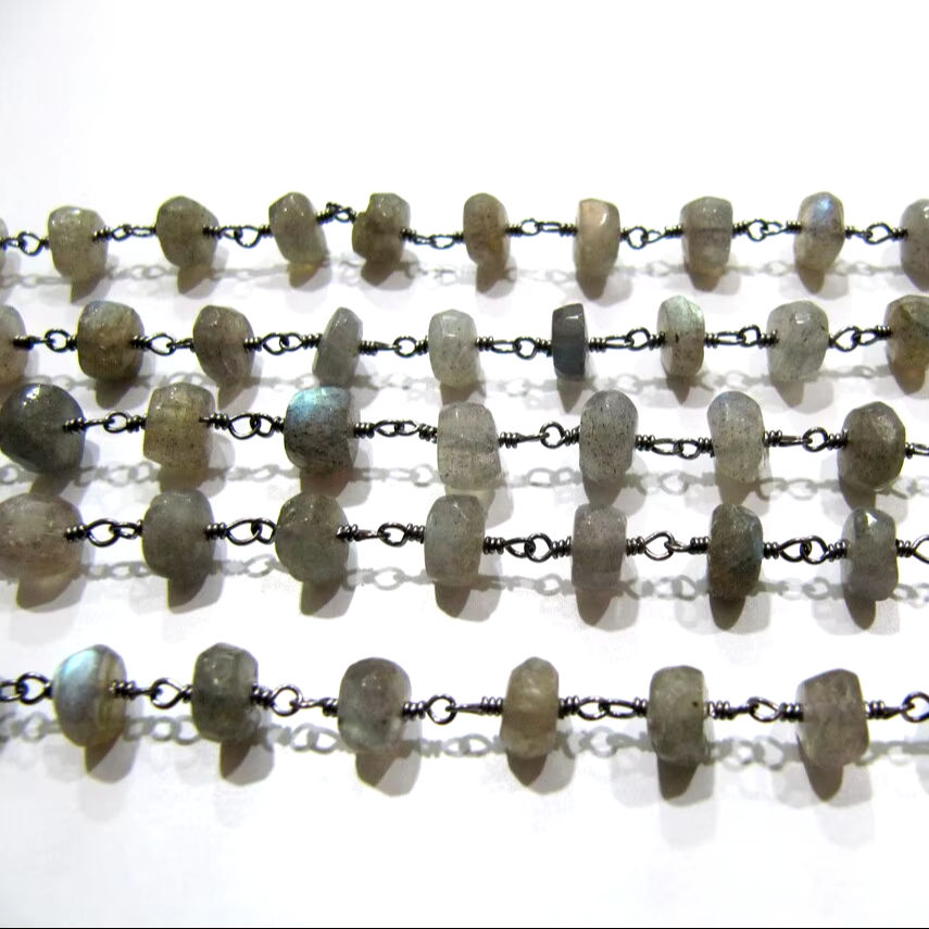 Labradorite naturelle rondelle à facettes 6-8mm perles de taille fil de laiton enroulé chapelet chaîne pour la fabrication de bijoux chaîne de pierres précieuses