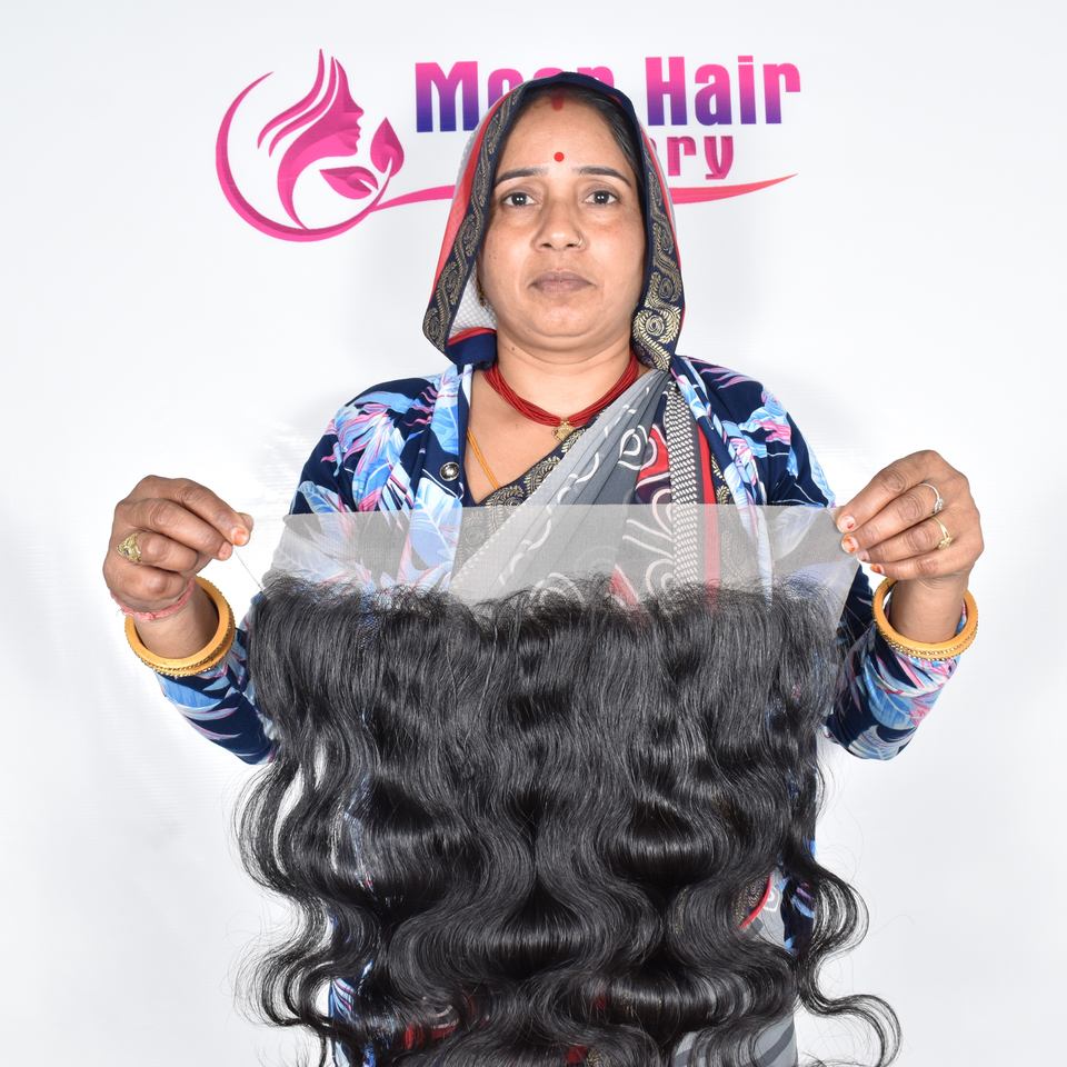 Natural looking Indian donor color black human hair Frontal Bodywave extension wholesale price supplier India available for sale