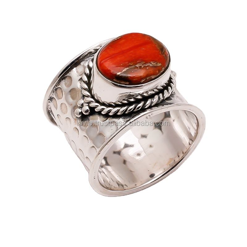 Bagues en cuivre naturel orange turquoise bijoux indiens vente en gros bagues en argent sterling 925 bijoux fins faits à la main fournisseurs