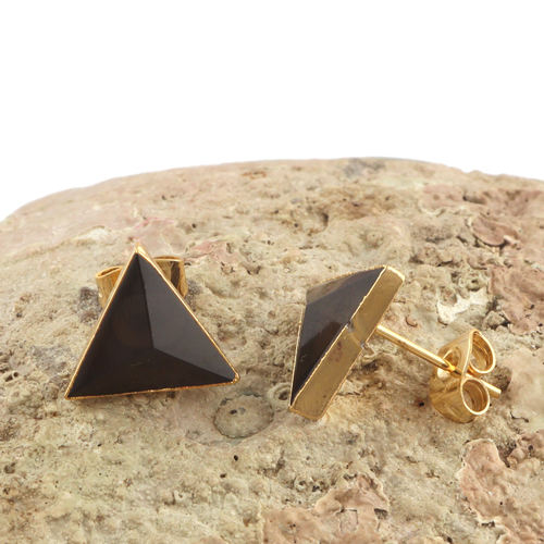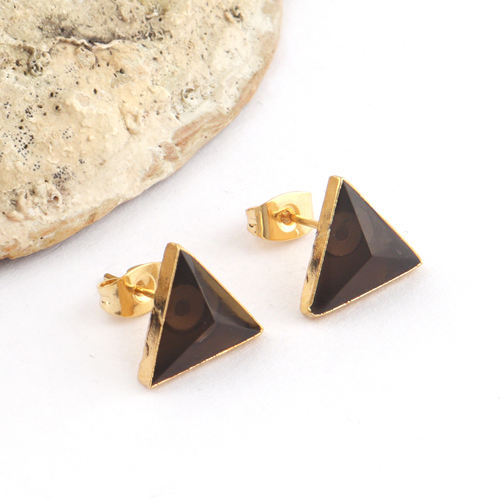 Boucle d'oreille en quartz fumé naturel, coupe triangulaire, clous d'oreille, plaqué or, fabrication artisanale, cadeau pour femme