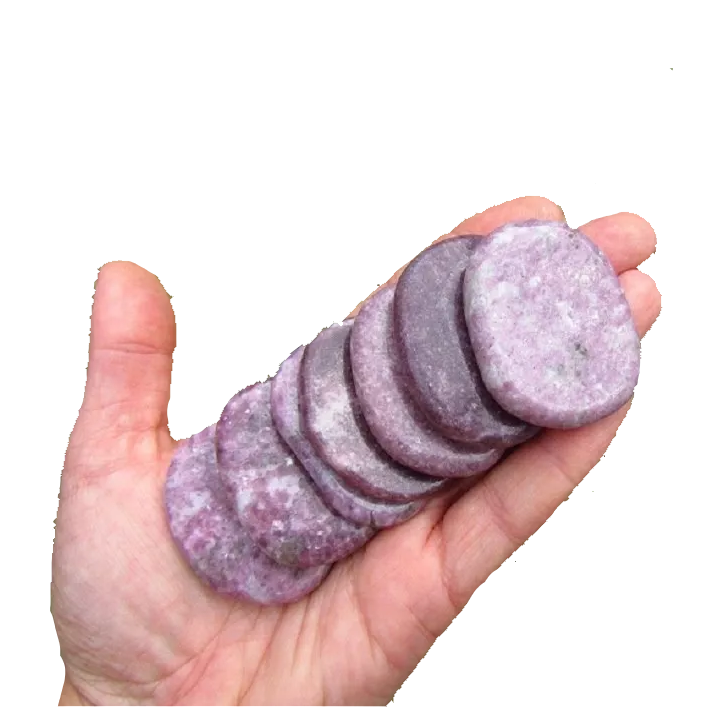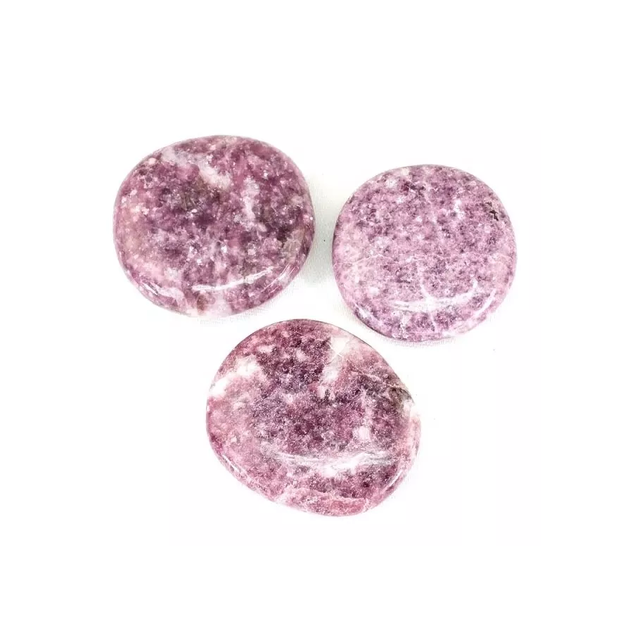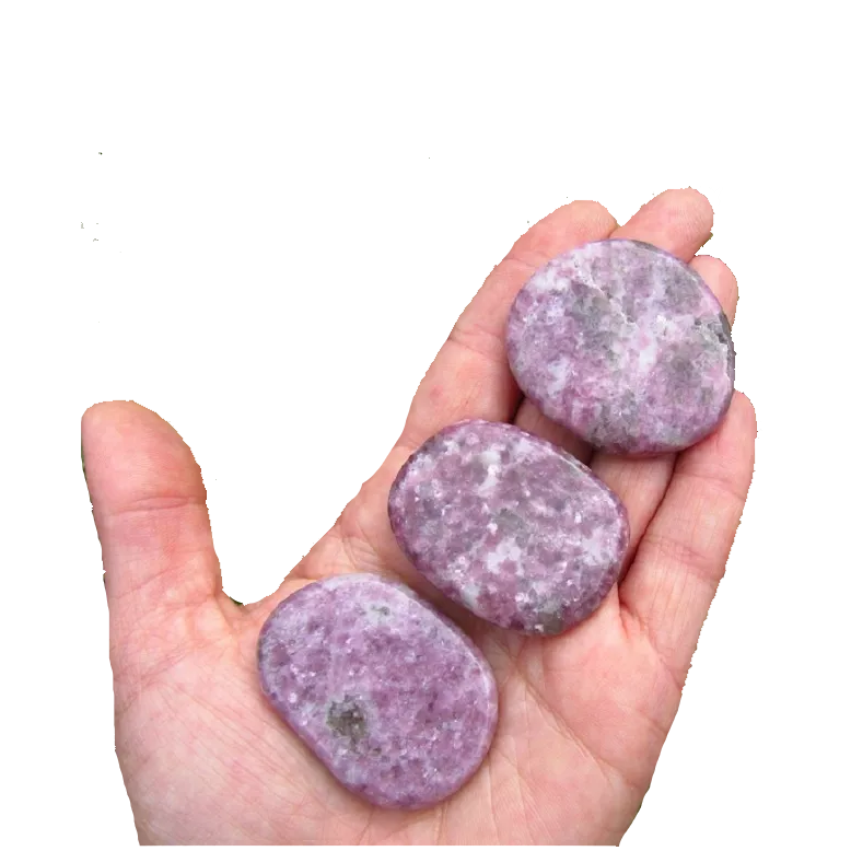 Pierre de haute qualité palmier plat lépidolite palmier plat cristal pierre précieuse pierre naturelle forme plate pierre de poche Protection grossiste