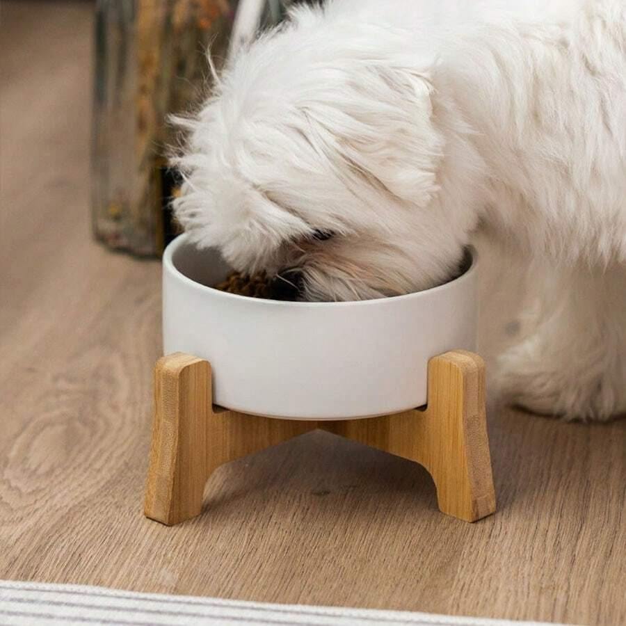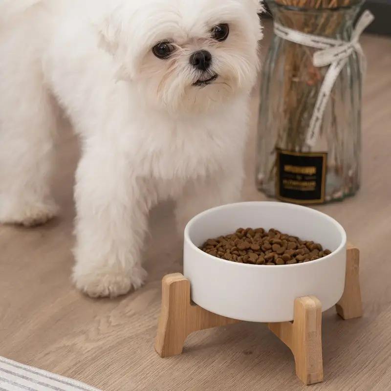 Natural wood dog cat food & water bowl stand holders with cheapest price wooden holder stands for pet feed bowls