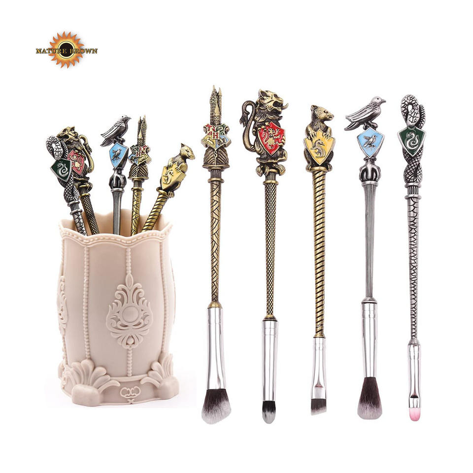 Harry Nature Brown Ensemble de pinceaux de maquillage professionnel 5 pièces Sac en polyuréthane personnalisé pour correcteur et blaireau Marque privée