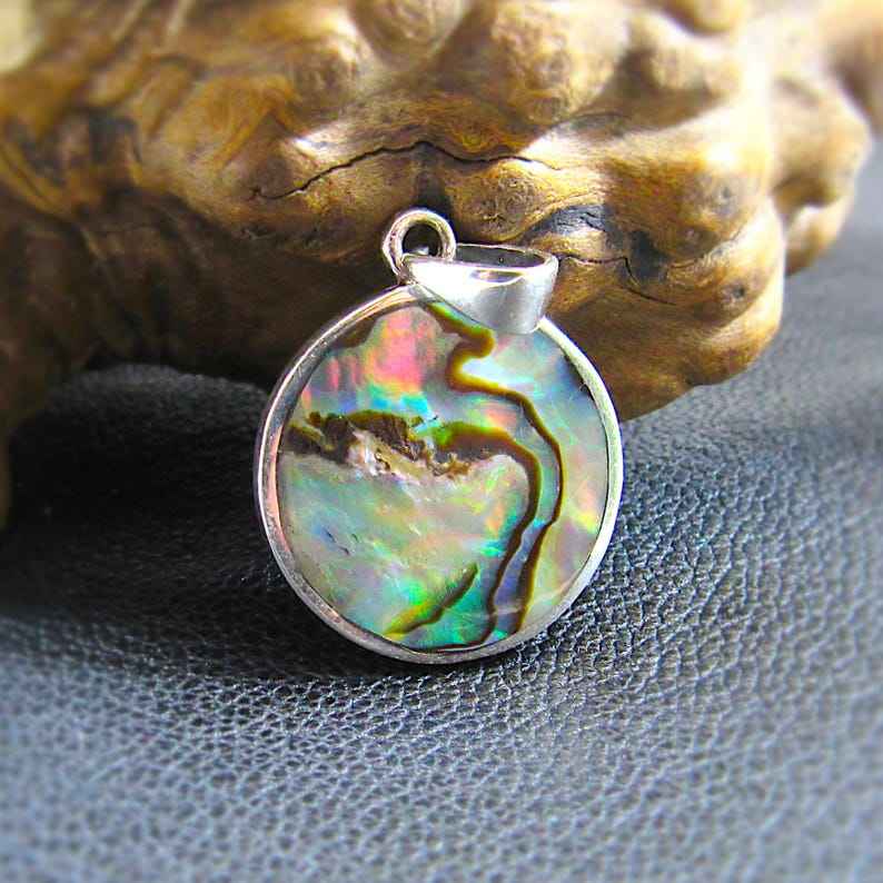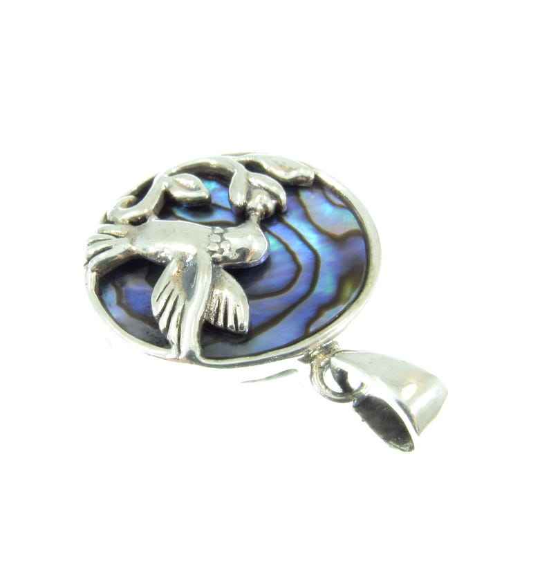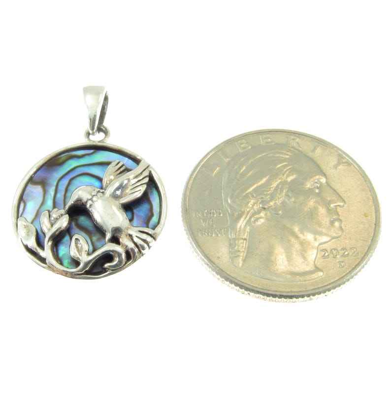 Pendentif Fleur Colibri Inspiré de la Nature avec Coquille d'Abalone en Argent Sterling 925 Plaqué Or Serti à la Main Charme