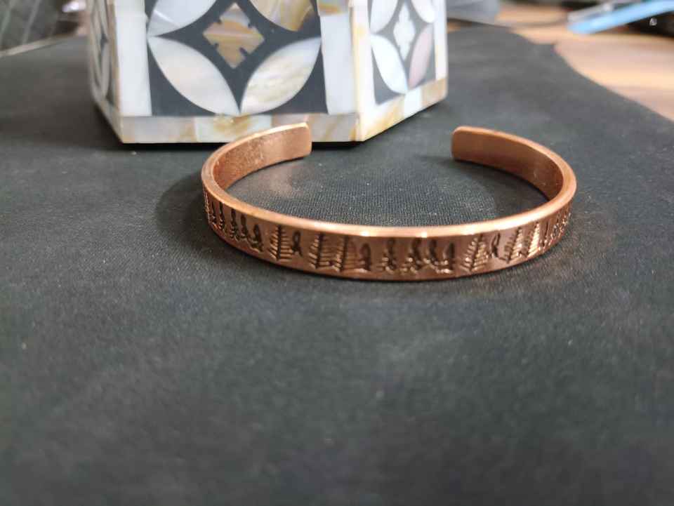 Bracelet en cuivre pur inspiré de la nature, gravé avec un motif de ligne d'arbre forestier, anti-arthrite, soulagement de la douleur, thérapie de bien-être unisexe