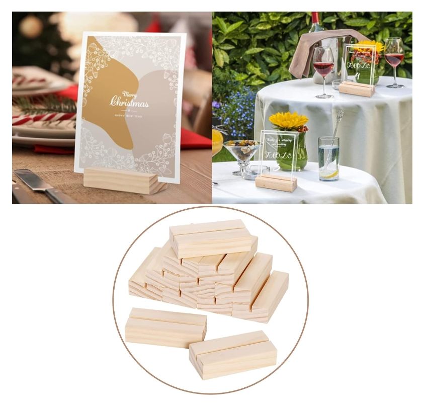 Supports de cartes en bois naturel massif pour affichage de menus et prix sur comptoir de café