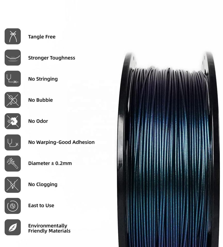 Filament d'imprimante 3D Nature3d Chine en PLA titane brûlé 1,75 mm, différentes couleurs par changement de couleur en fonction de la lumière, couleurs voodoo