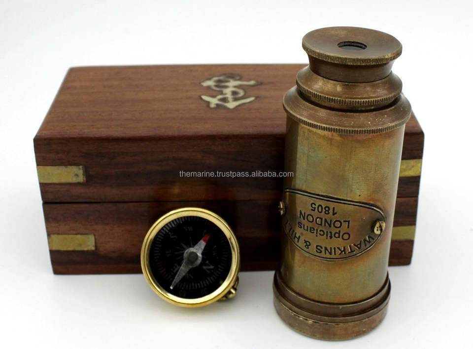 Capitaine nautique Spyglass télescope à main en laiton finition antique fonctionnelle pour les pirates dans une boîte en bois télescope à usage extérieur