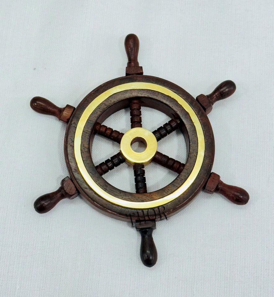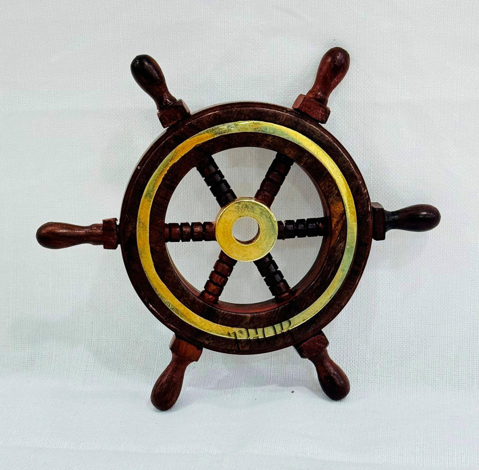 Roue suspendue de capitaine pirate faite à la main nautique (4 pouces) roue de navires pour la décoration de la maison volant de bateau en bois pour mur