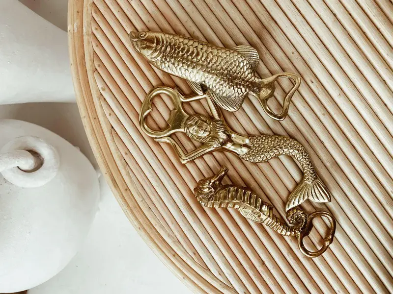 Décapsuleur en laiton métallique couleur or avec design sirène nautique Fournitures d'ouverture pour bar pub Fournisseur indien Ensembles de bar