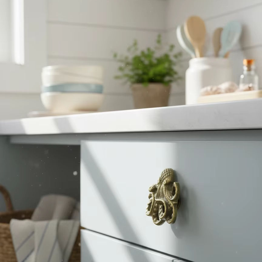 Nautical Octopus Iron Knob Antique Brass Finish Drawer Handle Ocean Theme Furniture Pull Wardrobe Cabinet Hardware