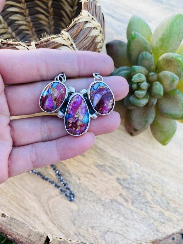 Navajo Sterling Silver Pink Dream Mohave Necklace Gold & Rhodium Plated Signed