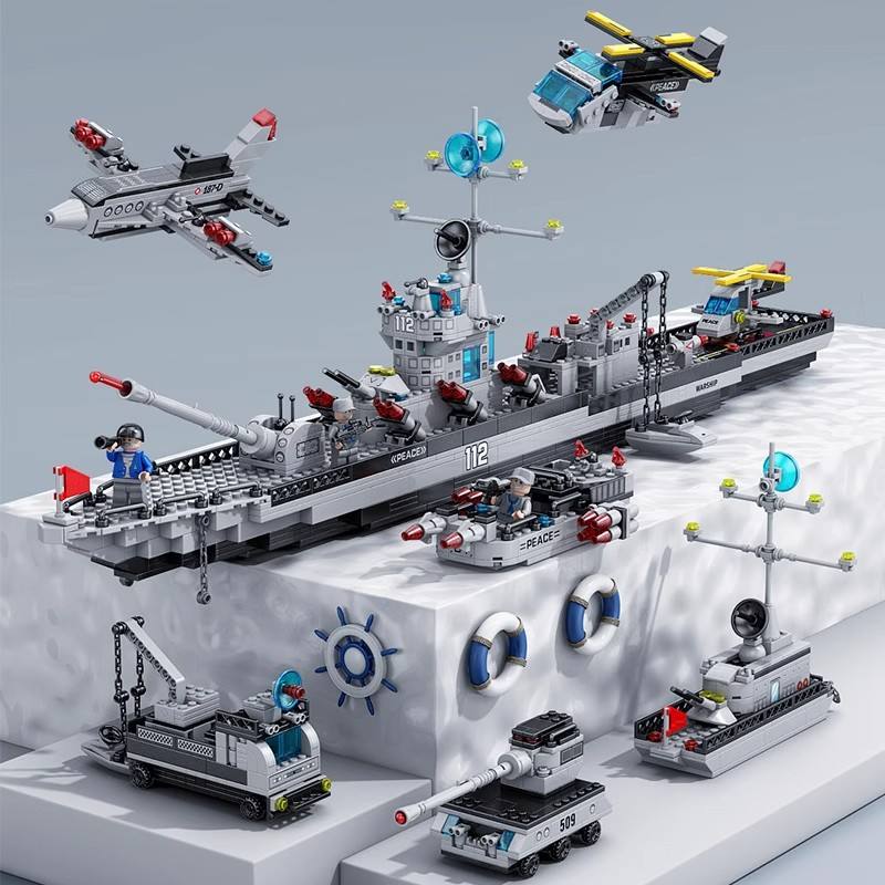Ensemble de blocs de construction Flotte Navale - Modèles de navires de guerre et de bateaux, Jouet de puzzle à petites particules pour enfants