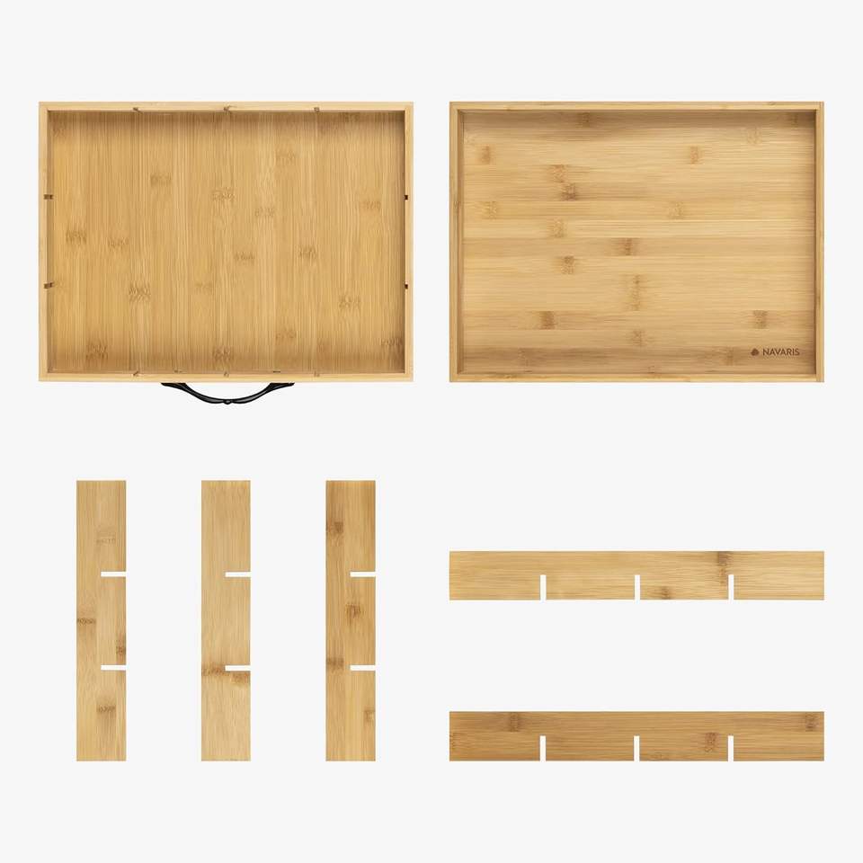 Boîte à thé rectangulaire moderne en bambou Navaris - Plateau de service multifonctionnel durable à 12 compartiments, organisateur de rangement pour sachets de thé
