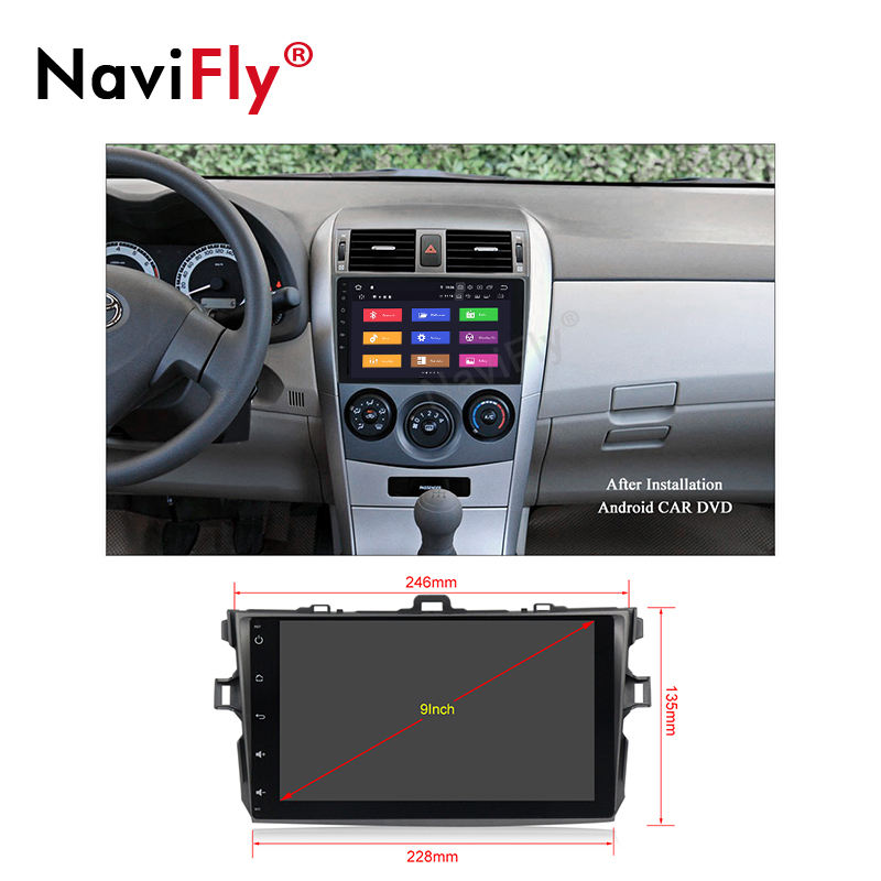 NaviFly 9 ''Système audio de voiture Vidéo de voiture pour Toyota corolla 2007 2008 2009 2010 2011 Lecteur Dvd de voiture PX6 Android 9.0 4 + 64GB