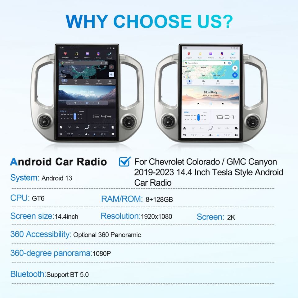 Autoradio multimédia Android NaviHua avec écran, Carplay et navigation, compatible avec GMC Canyon Chevrolet Colorado 2019-2023