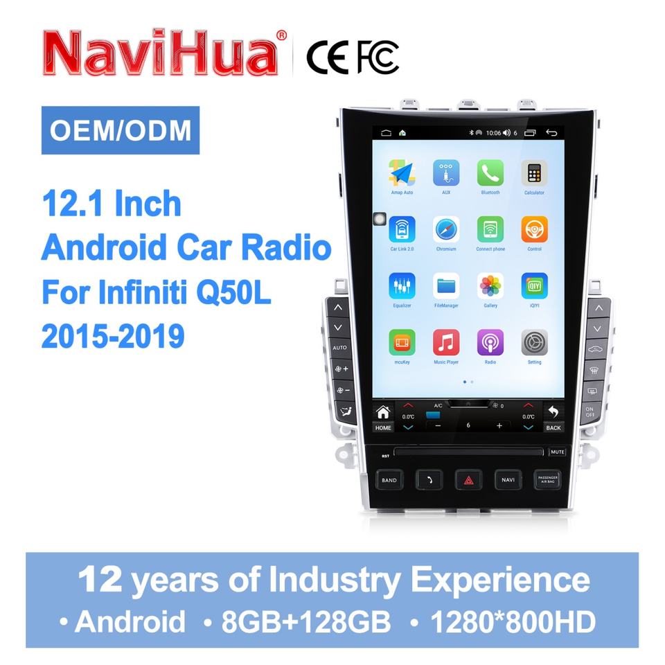 Autoradio Android Navihua 12,1 pouces avec écran tactile, Carplay, navigation, unité centrale multimédia pour Infinity Q50 Q50L 2015-2019